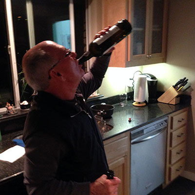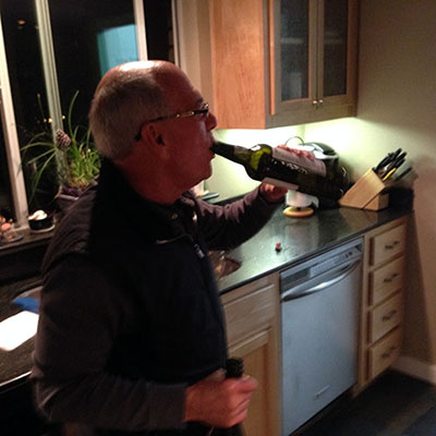 Here is where it gets tricky. Continue the upward movement of the bottle until it is at a 45 degree angle. It is important to swallow as much wine as possible in as short a period of time as possible. Only in this way can your taste buds fully experience all of the delicate flavors acquired during the aging process. |